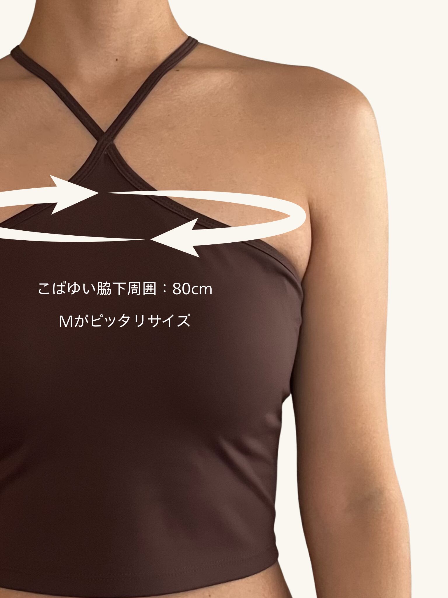 ◼︎ Mサイズ:脇周囲80cmの私が着用するとぴったりフィット。普段のブラサイズは D70ですが、安定感があり、胸元もきれいに収まります。