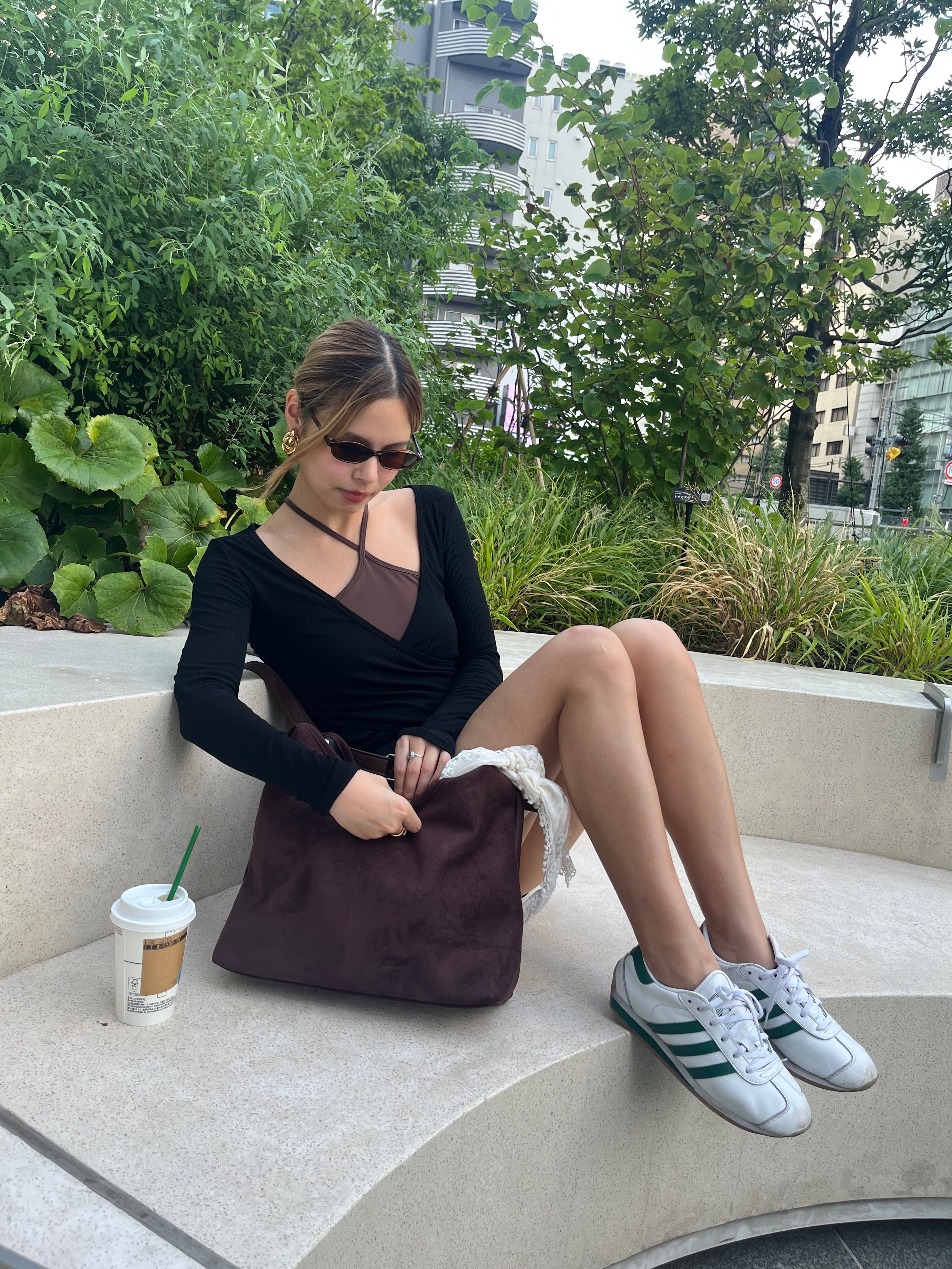 目線が首元に集まりやすいデザインなので、1枚着るだけで一気に垢抜けた印象に