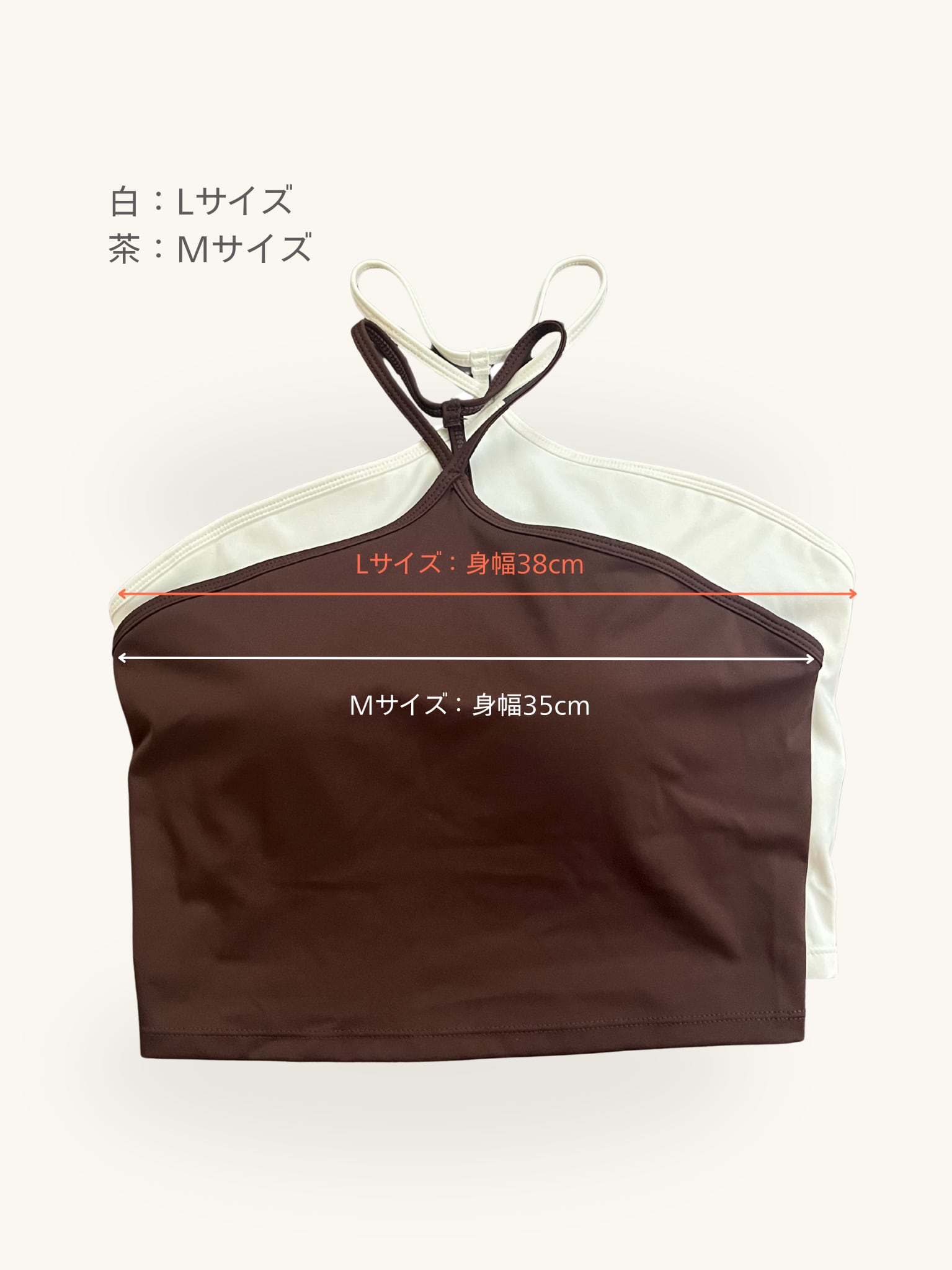 胸にボリュームがある方はLサイズがおすすめですが、胸元にそこまでボリュームがない方はMサイズがちょうどよいと思います。