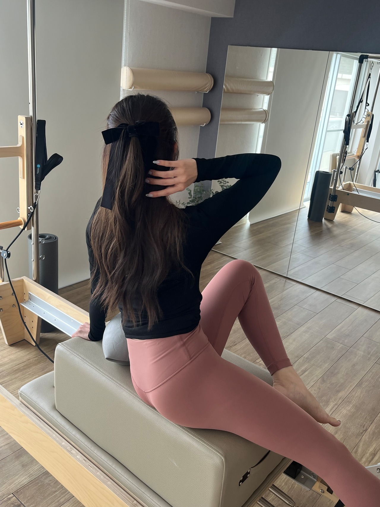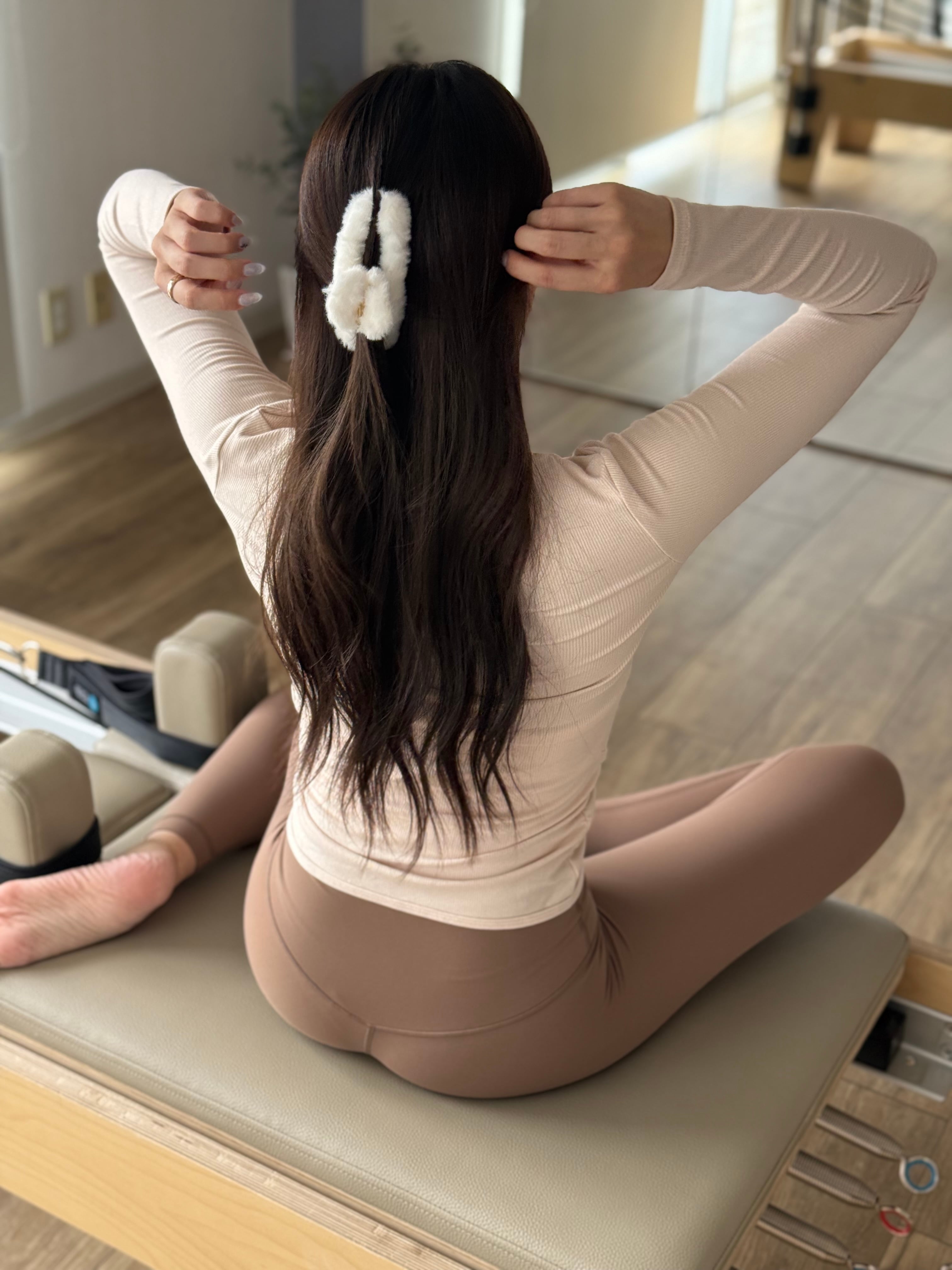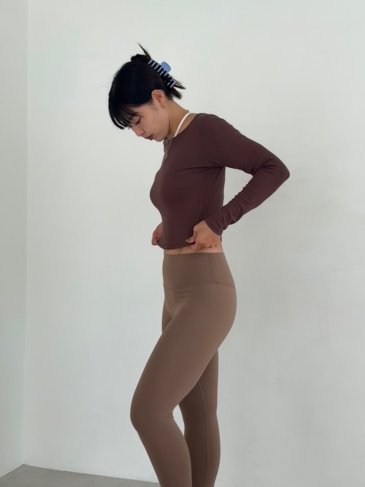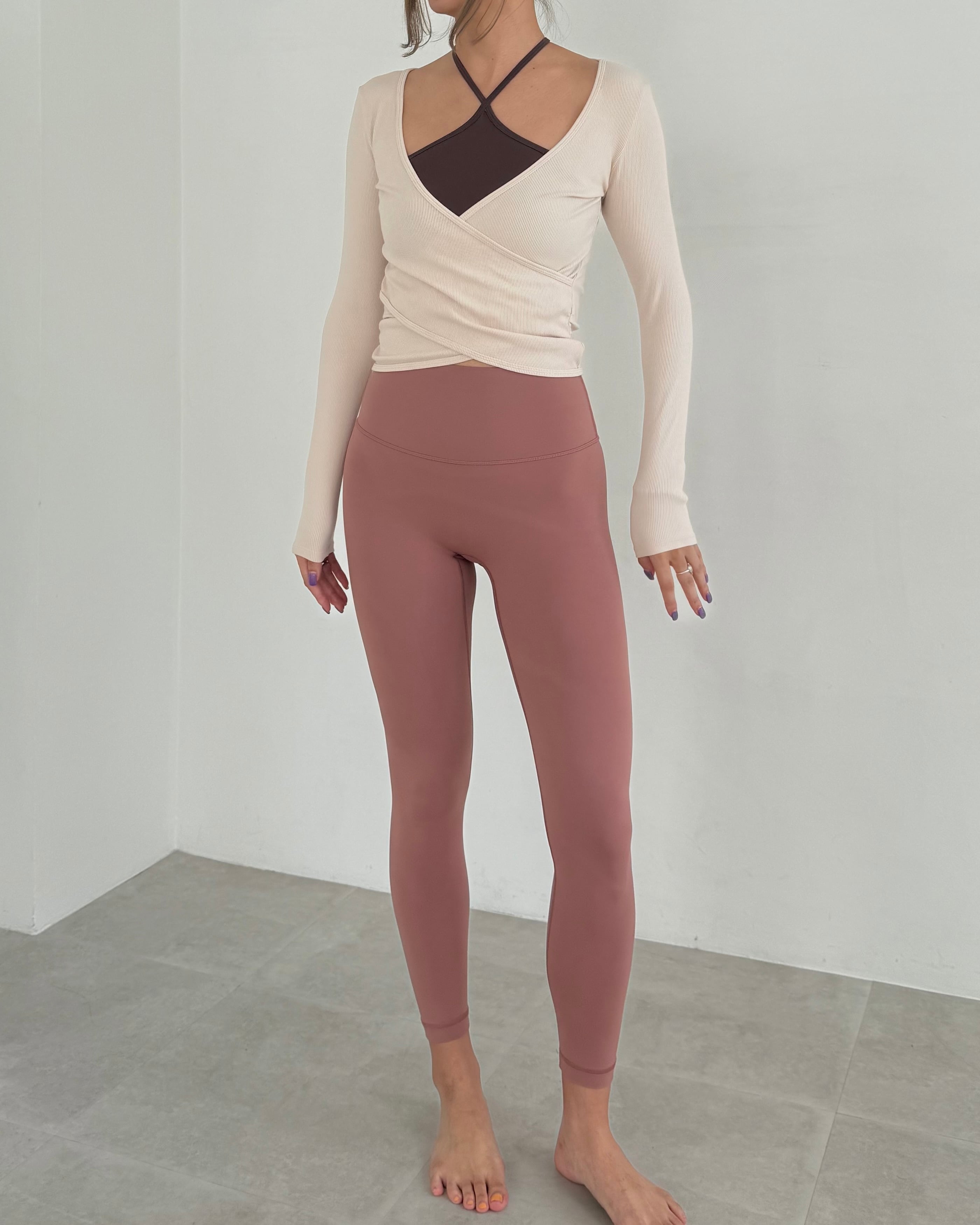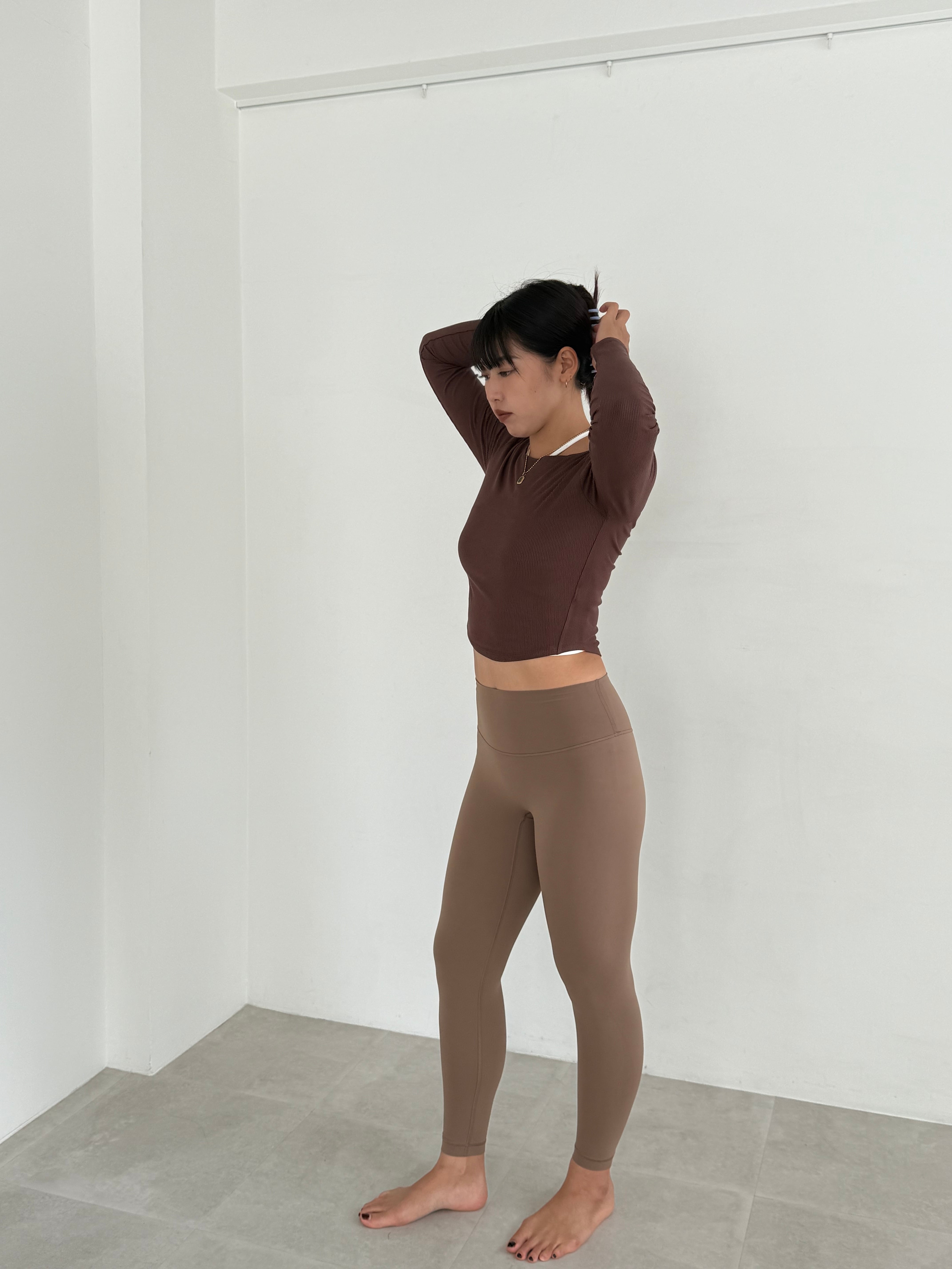 私が履くと八分丈ほどの長さになります。一般的な他ブランドのレギンス丈と同じくらいと考えてもらって大丈夫だと思います。