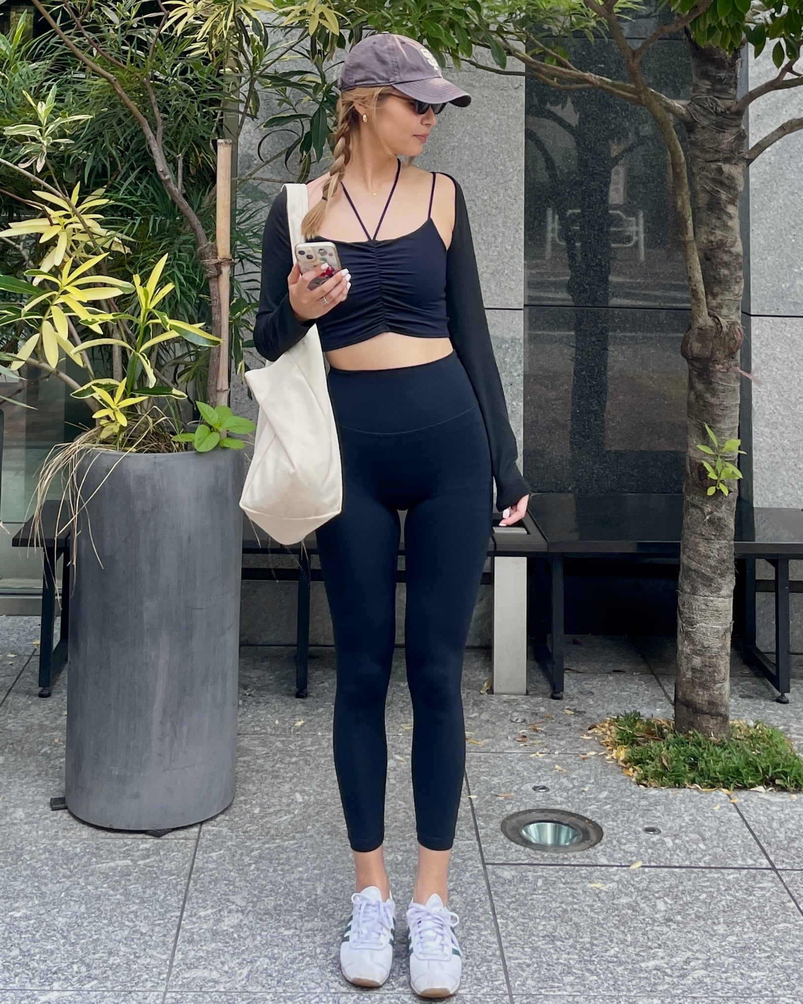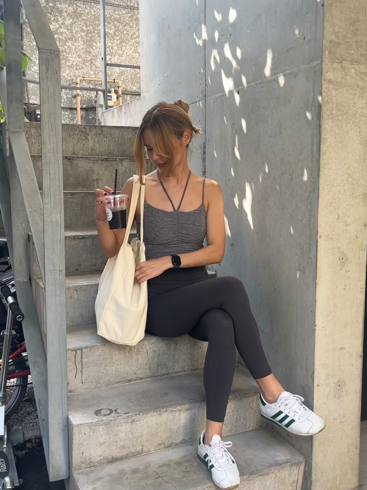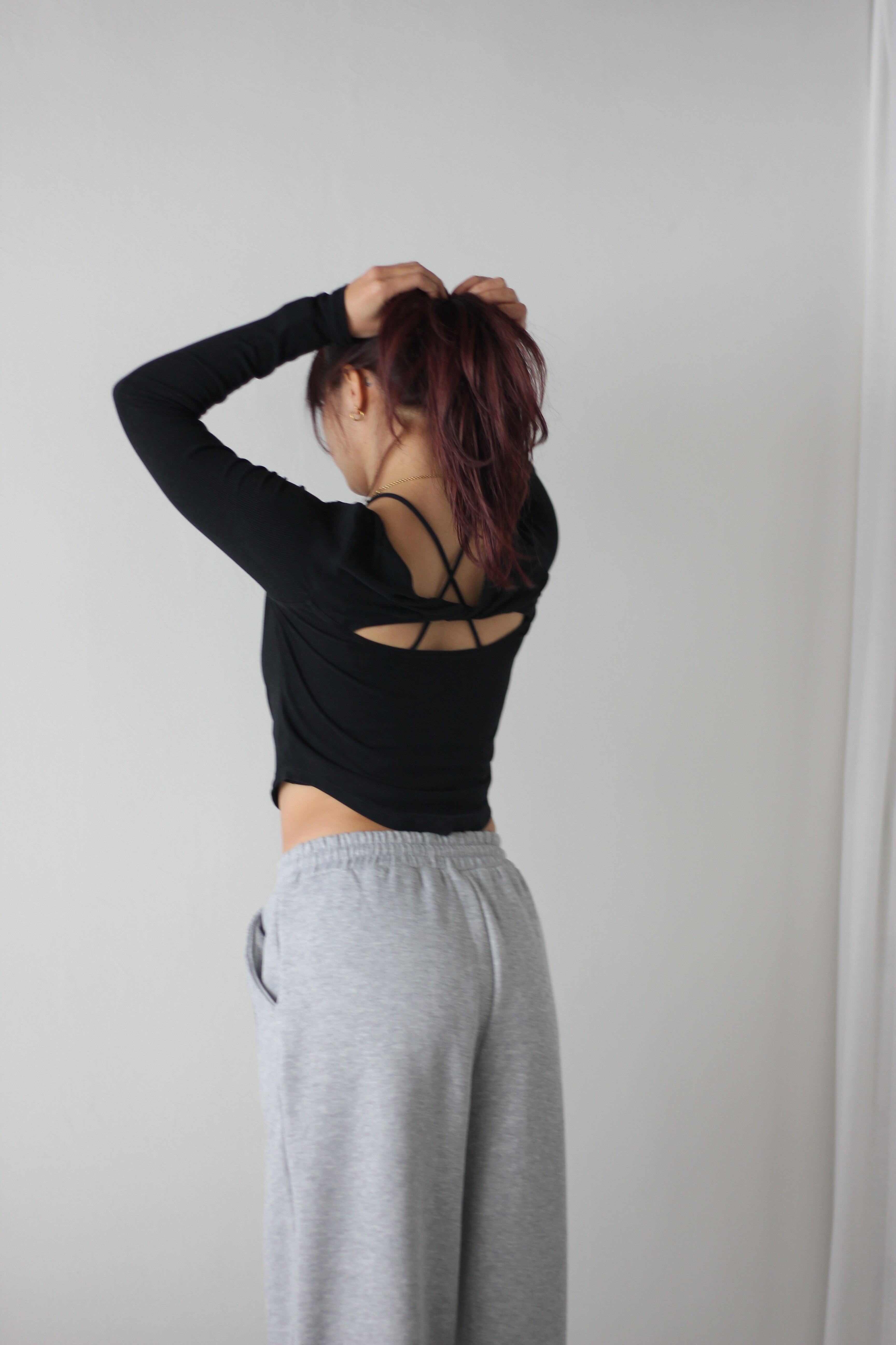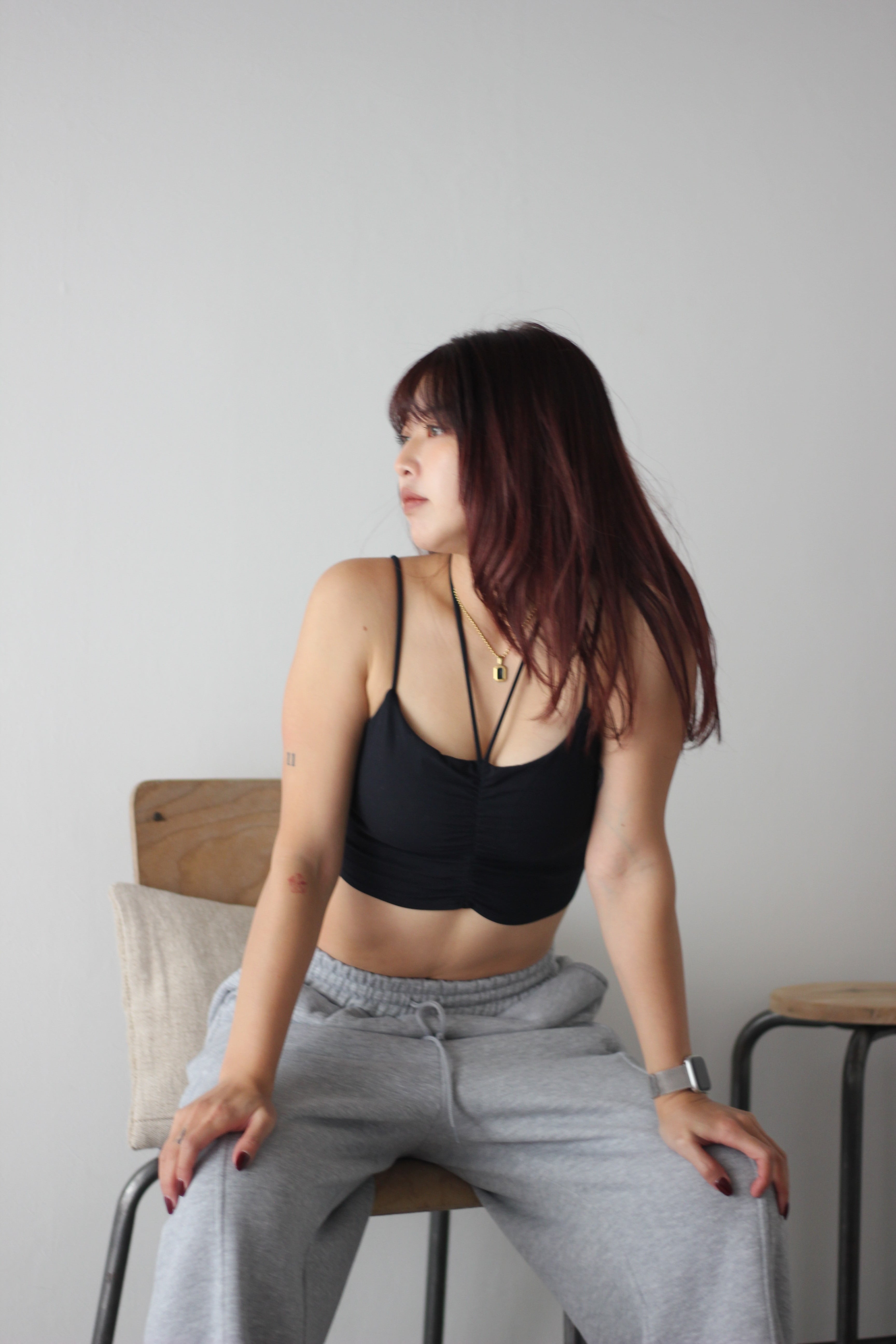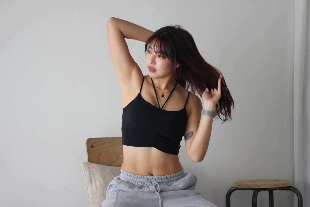 キャミっぽい丈なので、これ1枚で運動も◎